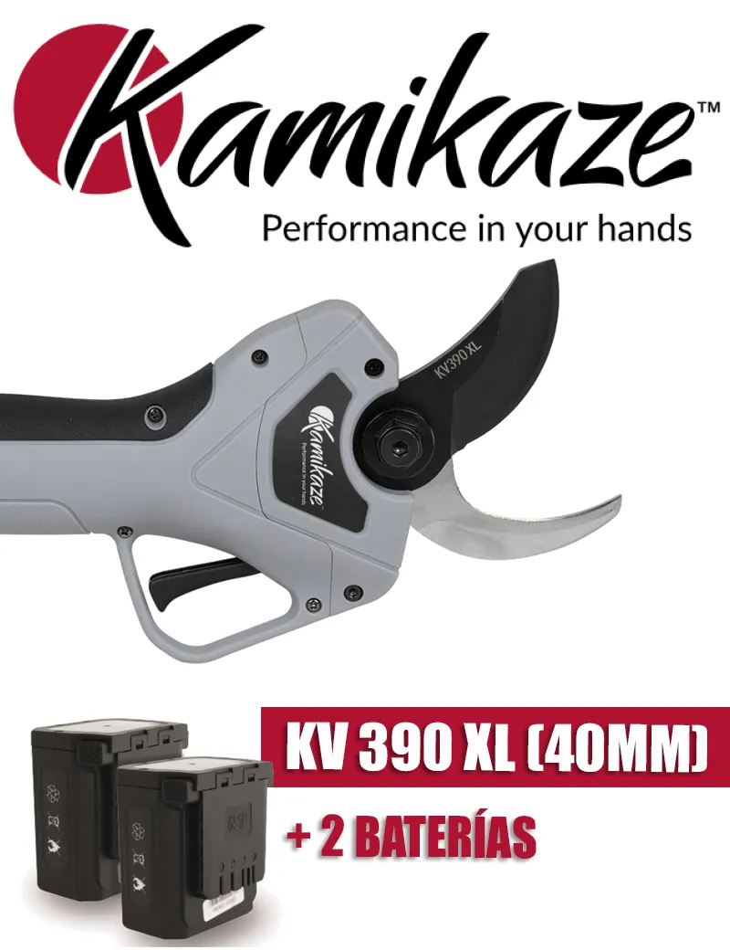 La KV390XL es la hermana mayor de la KV390: mantiene la versatilidad del modelo original y estrena hoja XL de nuevo diseño, optimizada para viña. Además, ofrece mayor apertura, un plus de versatilidad en distintos escenarios de poda.